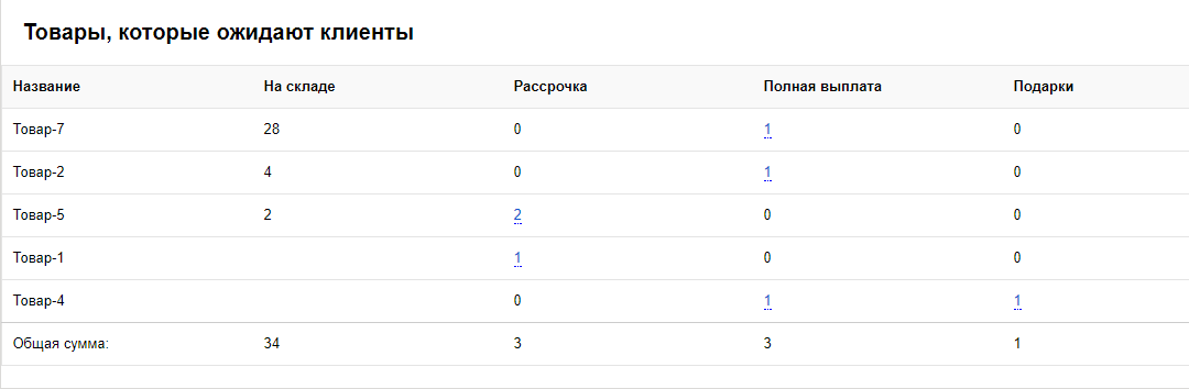 Товары которые ожидают клиенты с информацией о приоритетах поставок и сроках ожидания.